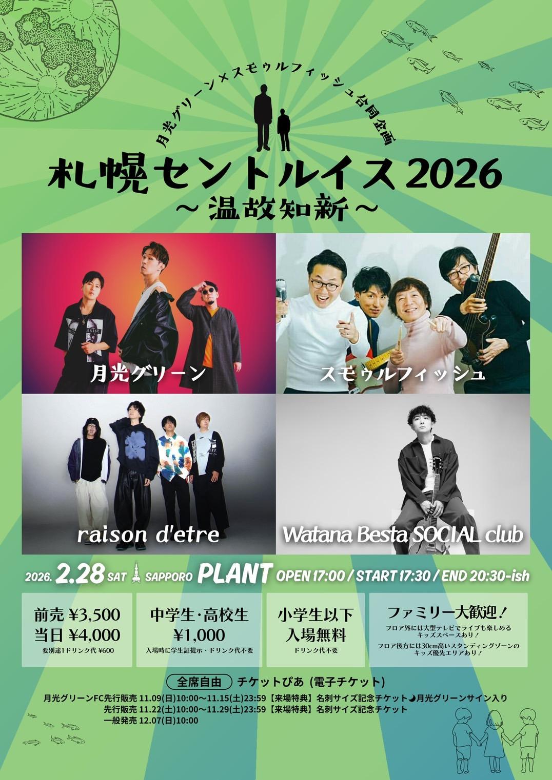 月光グリーン×スモゥルフィッシュ合同企画「札幌セントルイス2026〜温故知新〜」